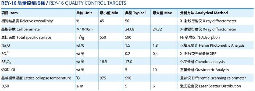 REY-16稀土Y分子篩,含RE2O3混合氧化稀土≥16.5%,根據用戶需要,可以調節稀土中La2O3和CeO2的比例。